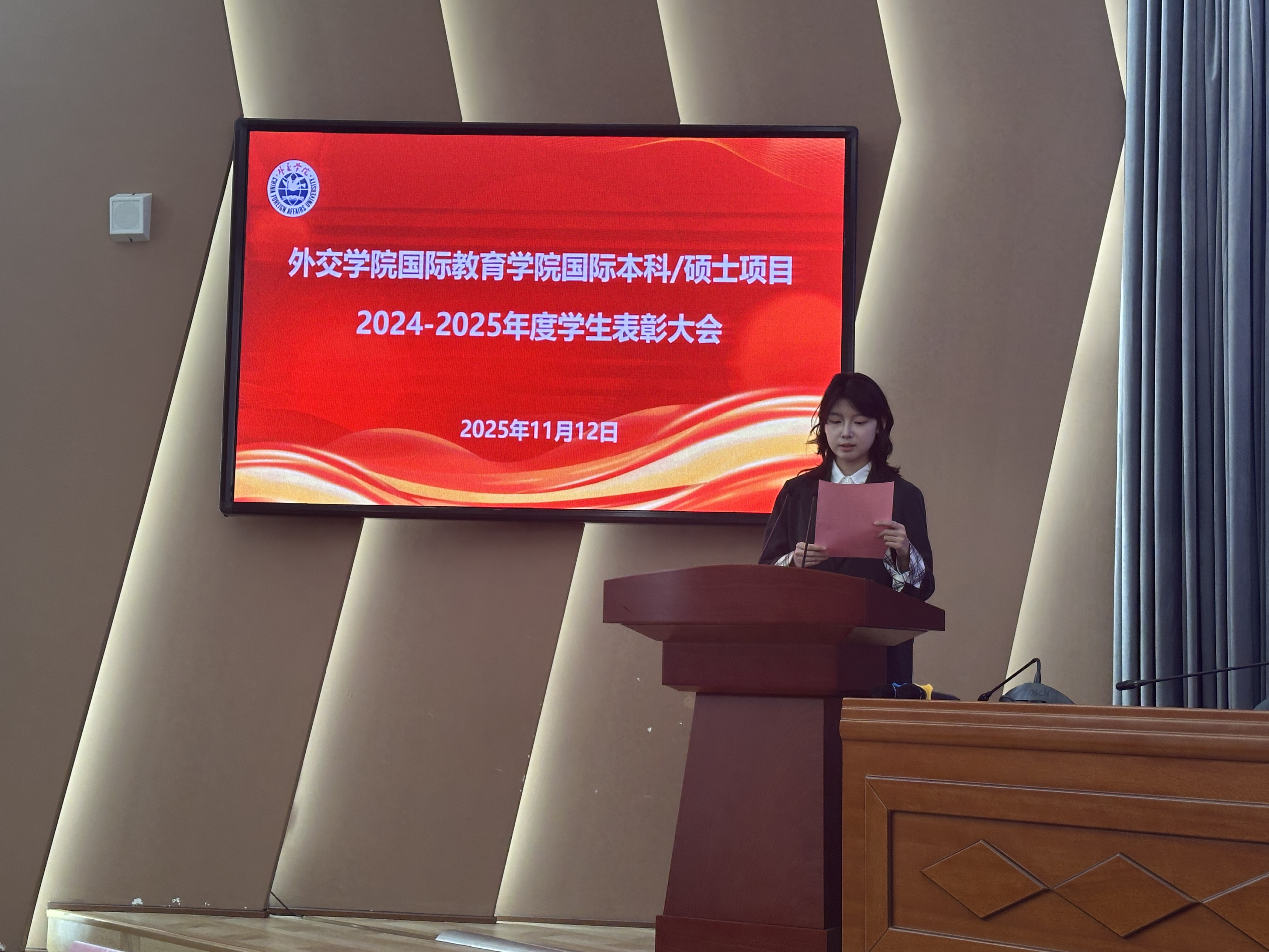 为表彰先进,树立典范,激励全体学生笃志前行,2025年11月12日,外交学院国际教育学院在外交学院图书馆报告厅隆重举行国际本科/硕士项目2024-2025年度学生表彰大会。