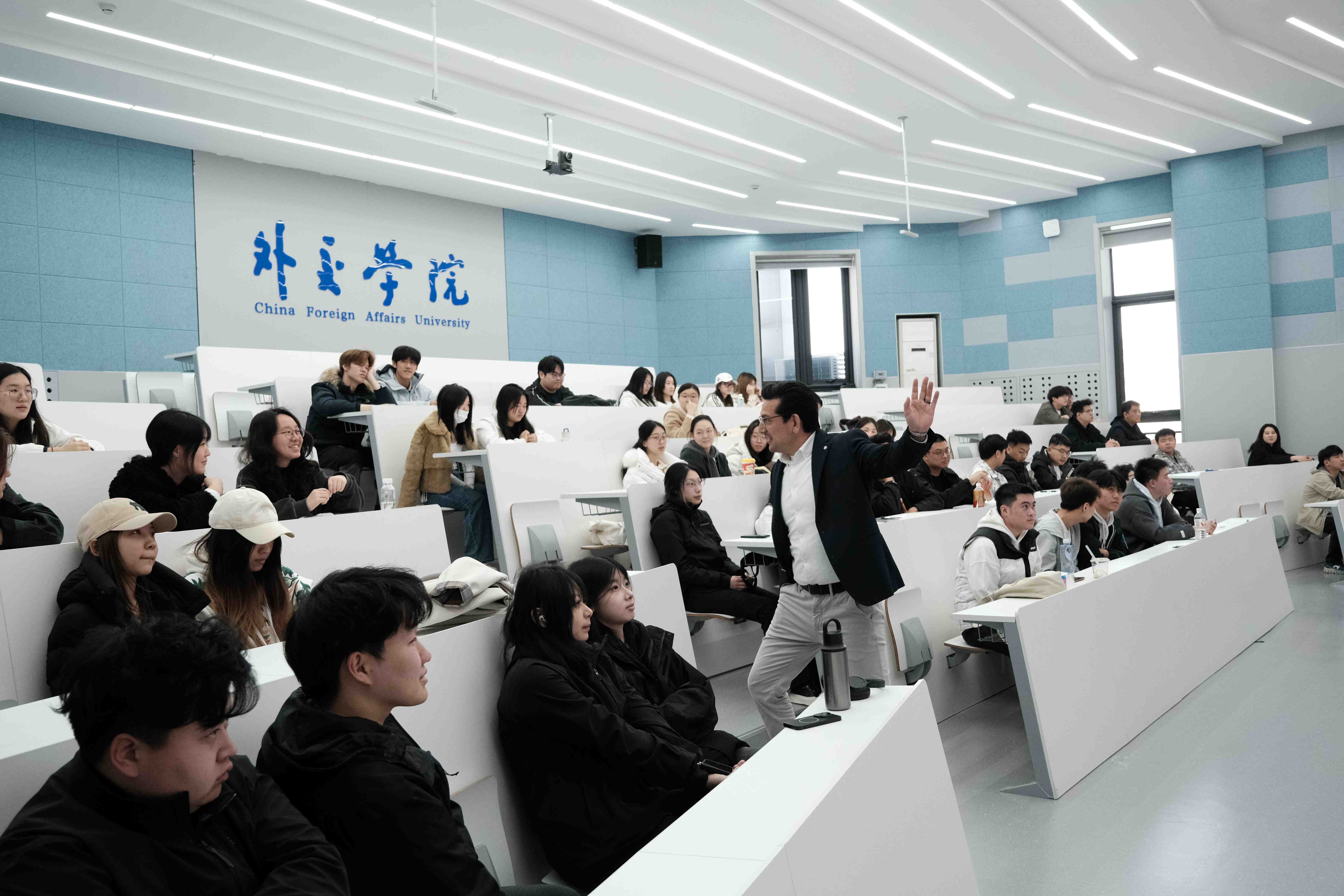 课堂上开展了有趣的互动:面对同一事物,有人看到扇子、墙壁,也有人看到矛、蛇或树。这一认知差异正是国际关系的真实缩影 —— 事件本身不会自我阐释,同一件事因视角不同,必会产生截然不同的解读。同学们围绕这一现象积极思考、踊跃回应,课堂互动氛围热烈。Hayakawa 博士还明确区分了两个核心概念:“发生了什么” 是客观可观测、无主观色彩的分析基础;“关于所发生之事的叙事” 则是掺杂预设、情绪与评判的主观解读。他结合案例讲解时,同学们主动举手作答、分享思考,让课堂知识在互动中不断深化,也在交流中明晰:国际关系分析的核心从不是记录事实,而是解读事实背后的意义,就像有时候的眨眼不一定是单纯生理动作,亦可是饱含社会语境的深意。