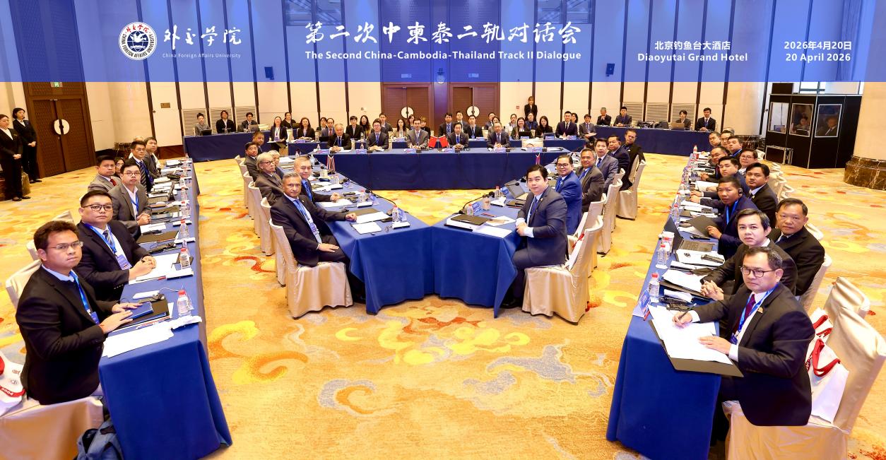 2026年4月20日至21日,由外交学院主办的“落实抚仙会晤共识 营造和平舆论环境”第二次中柬泰二轨对话会在北京钓鱼台大酒店举行。来自中国、柬埔寨、泰国三国的资深媒体人、智库学者、社会组织及人道机构代表等近百人参会。外交学院党委书记王世廷大使致开幕辞,校长高飞教授主持开幕式,副校长孙吉胜教授致闭幕辞。