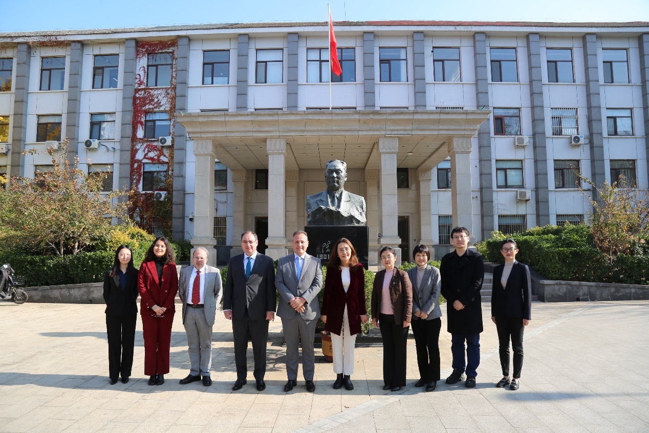 法国使馆法语师资培训负责人Didier Hetet、教育合作官员Célia Hoarau、教育合作官员胡心美、外语系主任王晓侠、教学副主任金俊华、法语教研室主任王鹏飞、法语教研室副主任乐旻参加会见。