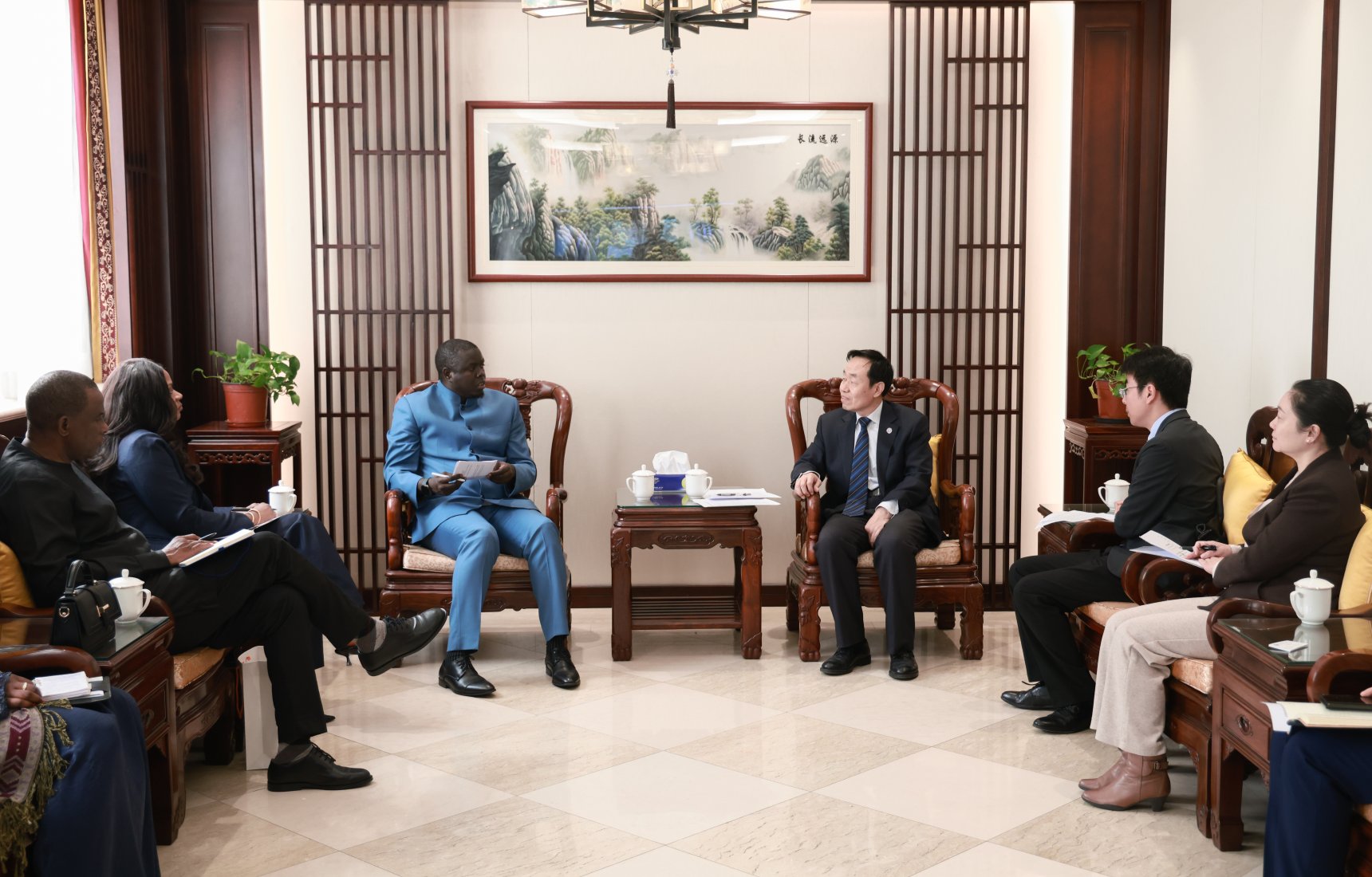 4月3日,外交学院党委书记、人类命运共同体研究中心秘书长王世廷在外交学院接待冈比亚总统府办公厅主任阿利乌·洛姆一行,带领来宾参观人类命运共同体研究中心展示厅,并与代表团进行座谈。研究中心、外办及中国外交培训学院负责人参加。