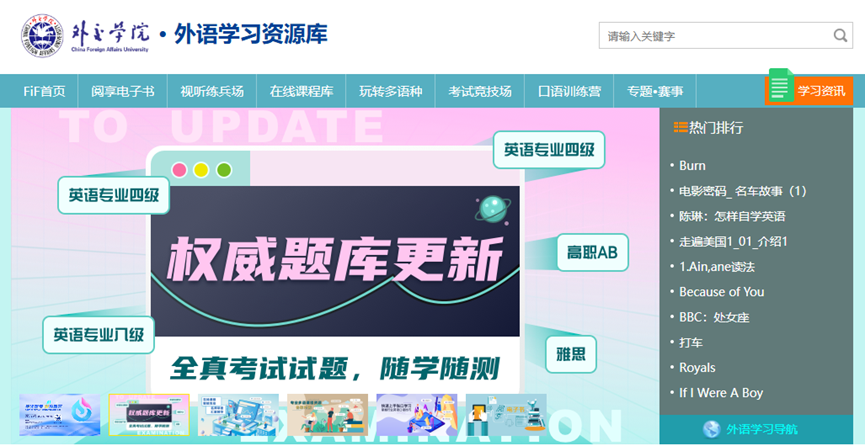 别急!学校早已为你准备好官方资源库——FiF外语学习资源库!