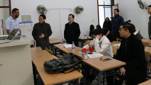 5日(星期一)新学期开学第一天,秦亚青院长、江瑞平副院长、高飞院长助理在新校区管委会和教务处工作人员的陪同下,对IBP项目上课情况进行了全面检查。