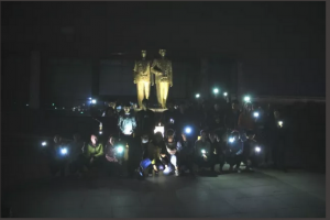 春风正起,上周五我们举办了期待已久的荧光夜跑。晚上6点,所有人准时集合在伟人广场, 每组成员紧张又期待的进行了第一次游戏的抽签 。