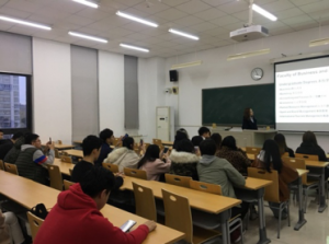 本周英国考文垂大学北京办公室的校方代表来到外交学院IBP项目,为即将出国留学的大三学生举办了留学讲座,具体介绍了大学今年的优惠政策、申请要求以及适合IBP学生们的具体专业,为即将出国留学的学生提供了详细、专业的信息资讯。