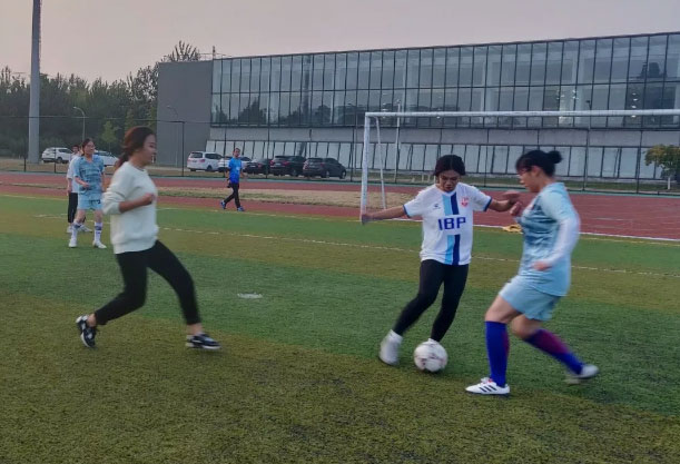 下半场,双方斗志未减,皮球从外语系禁区快速转移到国教院禁区,引起场边观众同学一阵阵欢呼。不过,国教院一位防守队员在拼抢中出现了受伤的情况,虽然她执意坚持,但还是不得不下场。由于没有替补,国教院同学四人继续,顽强地把优势保持到最后一分钟。