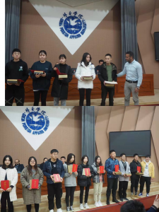在颁奖环节中,许敏老师、刘星老师、Tom老师、魏大蒙老师、李晓灿老师、郭敦义老师和Amine老师分别为一、二、三等奖学金获得者、三好学生获得者、优秀学生会干部、活动积极分子和最佳进步奖获得者颁发了奖状和奖品。