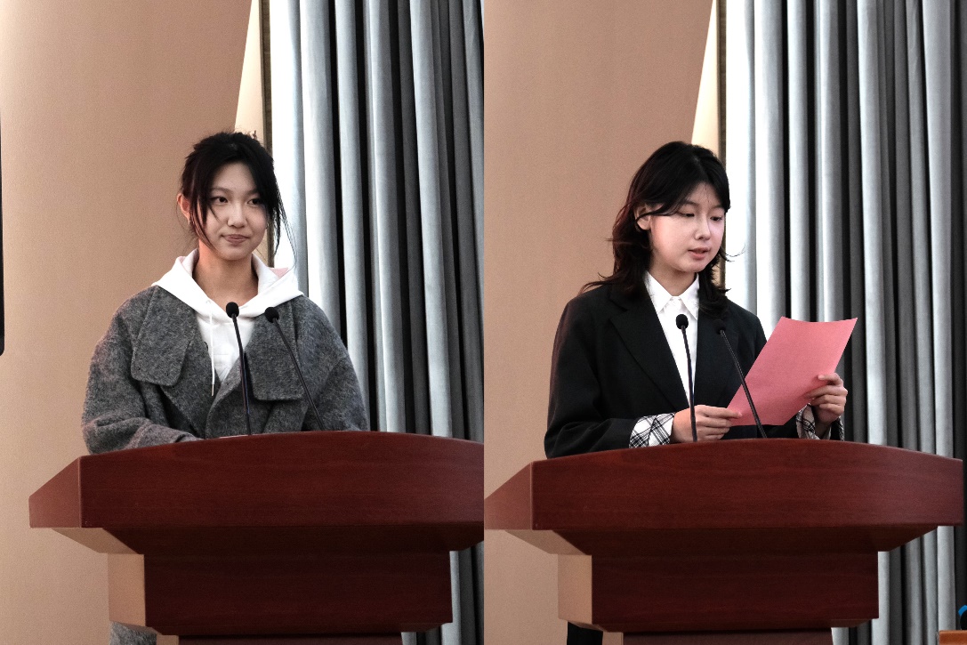 颁奖后,国际硕士项目获奖学生代表于明靖和国际本科项目获奖学生代表刘心怡先后发言。分享了学习路上的思考与收获,表达了对师长的感激和对未来的憧憬,展现了外院学子自信昂扬的精神风貌。