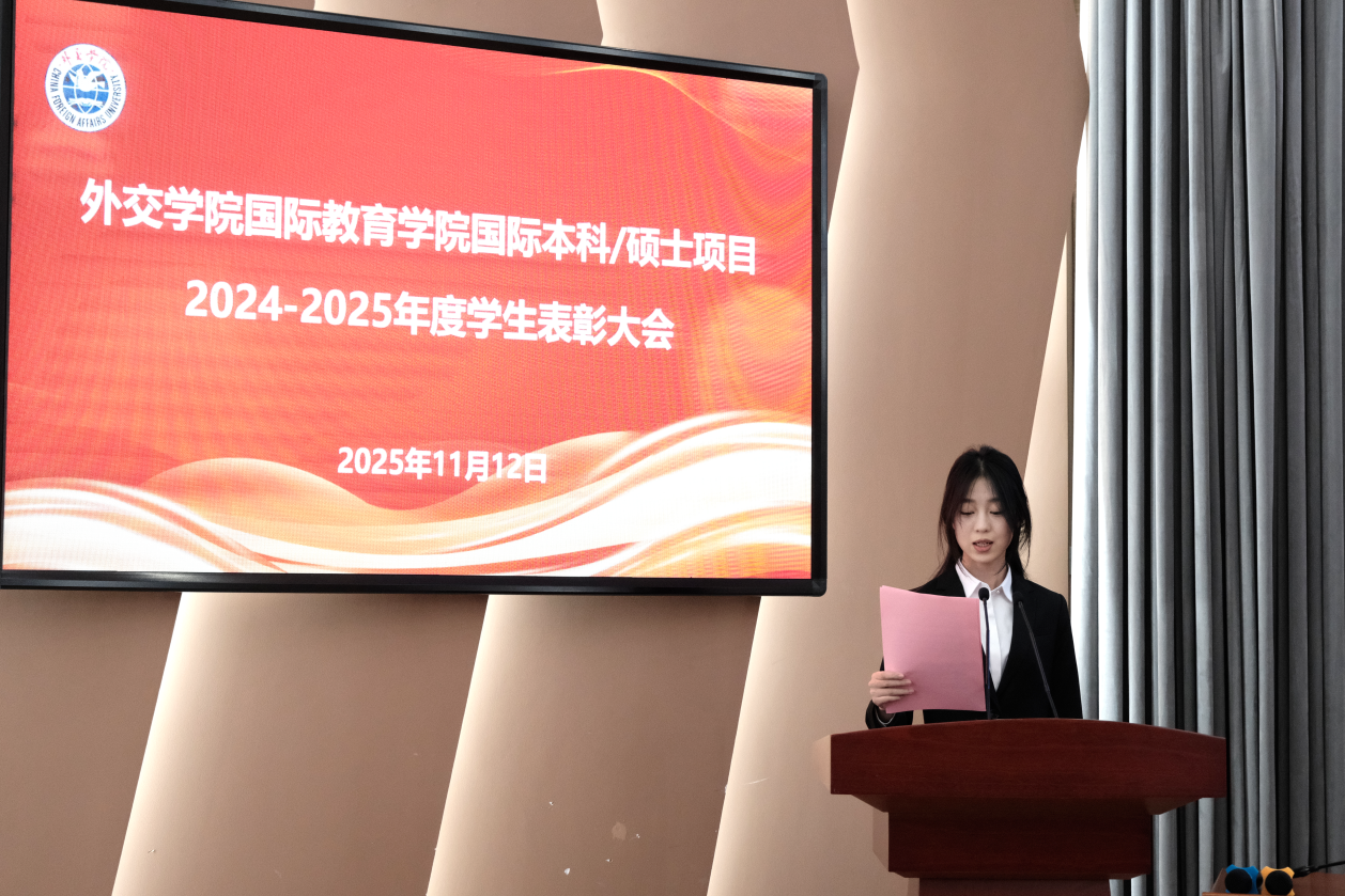 为表彰先进,树立典范,激励全体学生笃志前行,2025年11月12日,外交学院国际教育学院在外交学院图书馆报告厅隆重举行国际本科/硕士项目2024-2025年度学生表彰大会。