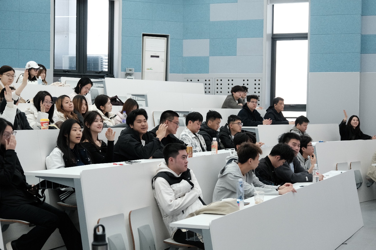课堂上开展了有趣的互动:面对同一事物,有人看到扇子、墙壁,也有人看到矛、蛇或树。这一认知差异正是国际关系的真实缩影 —— 事件本身不会自我阐释,同一件事因视角不同,必会产生截然不同的解读。同学们围绕这一现象积极思考、踊跃回应,课堂互动氛围热烈。Hayakawa 博士还明确区分了两个核心概念:“发生了什么” 是客观可观测、无主观色彩的分析基础;“关于所发生之事的叙事” 则是掺杂预设、情绪与评判的主观解读。他结合案例讲解时,同学们主动举手作答、分享思考,让课堂知识在互动中不断深化,也在交流中明晰:国际关系分析的核心从不是记录事实,而是解读事实背后的意义,就像有时候的眨眼不一定是单纯生理动作,亦可是饱含社会语境的深意。